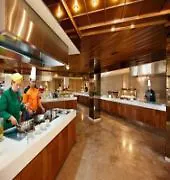 Goście mogą odwiedzić restaurację grecką, aby zjeść obiad, lub restaurację a la carte, aby zjeść śniadanie. Obie znajdują się na miejscu. W okolicy znajdują się restauracje, w tym Vicenzos Cornaros, która leży w prawie 200 m.